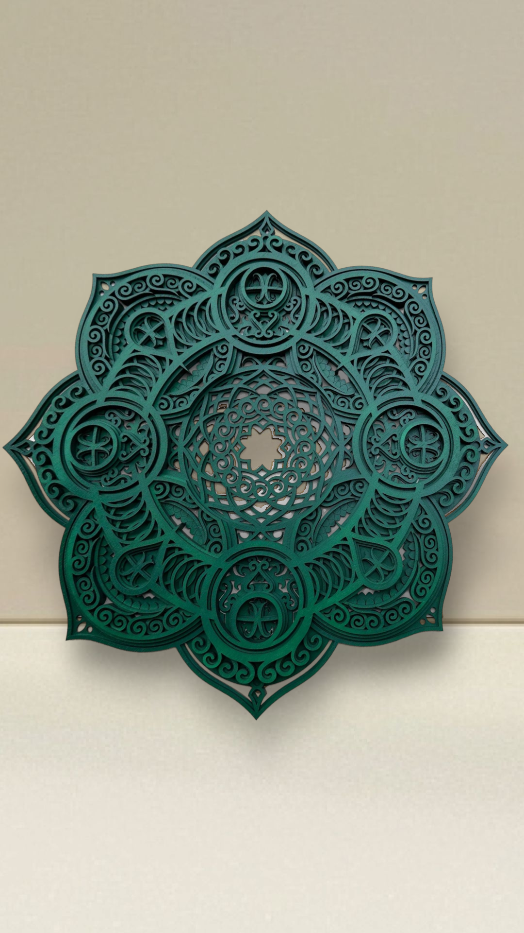 Vitalform Tetrapulse este o versiune atent distilată a mandalei originale, alcătuită din 4 straturi. Ea păstrează simbolismul de bază și geometria complexă, oferind în același timp și o scară mai intimă; ideală pentru spații personale, altare, colțuri de lectură sau ca accent decorativ.